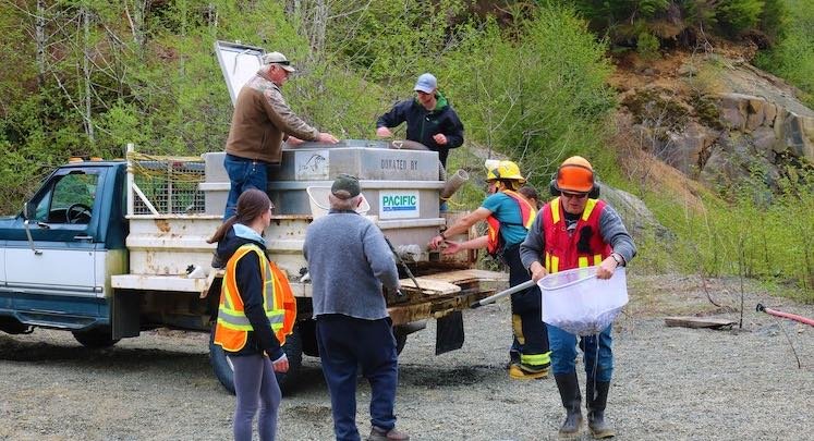Most recently, the TSES spearheaded a project releasing over 30,000 fry into the Leiner River just outside of the village. The project saw the fish being flown up using Western Forest Products helicopters to more remote spawning pools further up the river.