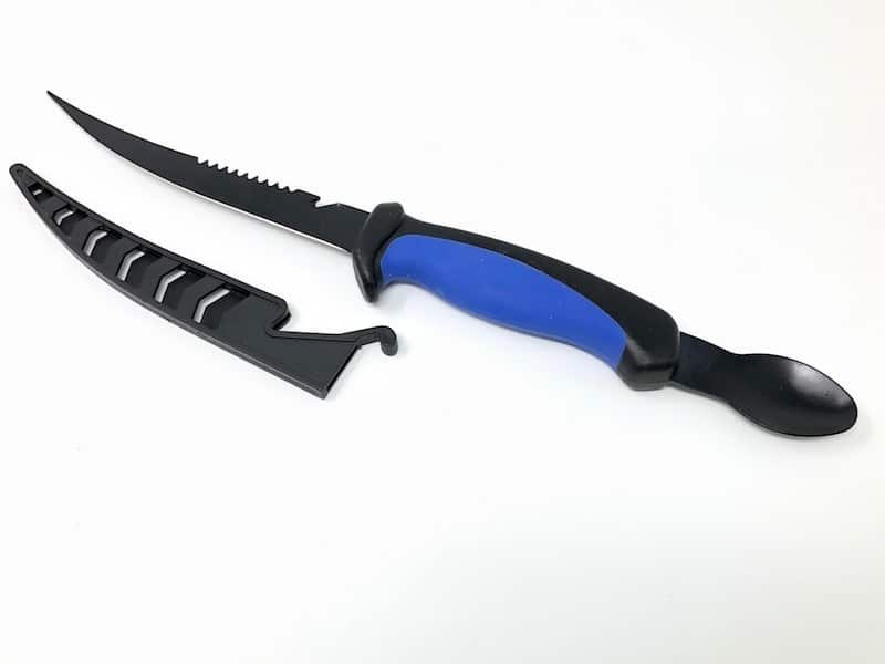 Finally! A decent knife with a spoon side for scraping the bloodline that you won’t cry too long about if you forget it on the cutting table. German stainless steel, thumb lock, and line-cutting channel—this bad boy is coming home with you today for a lousy $14.99.