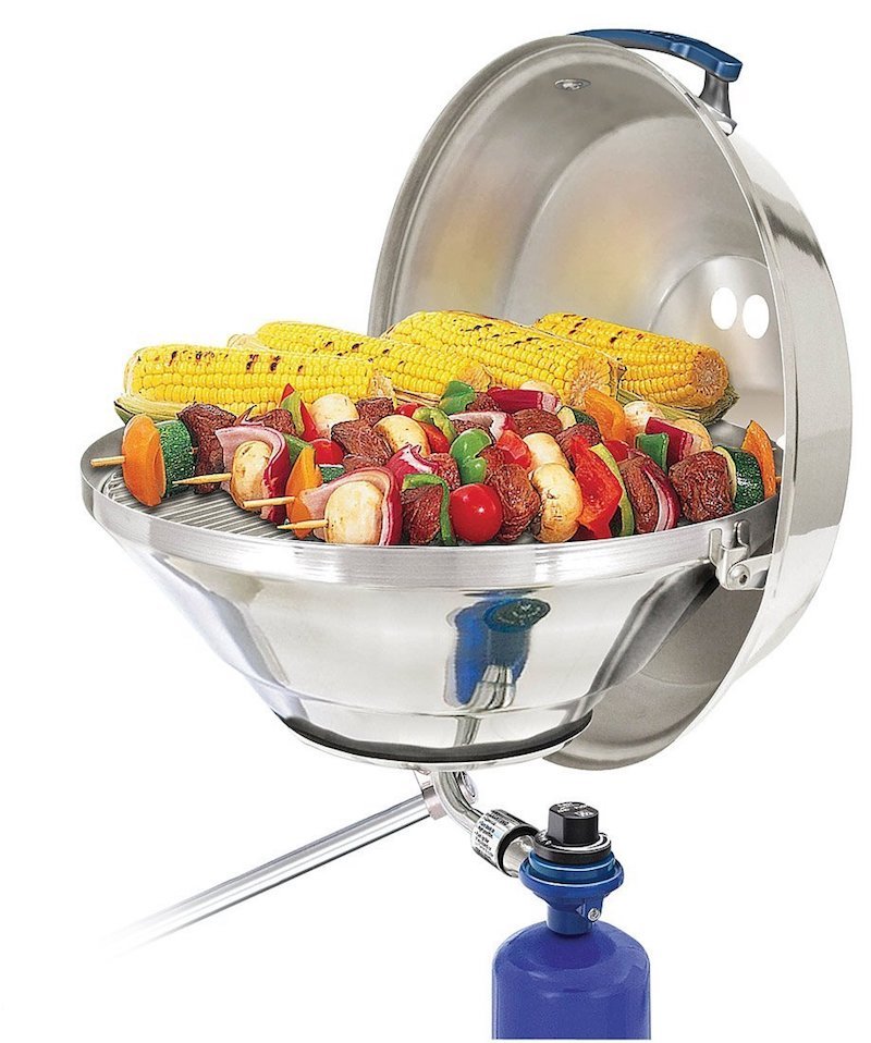 If you don’t have a BBQ on your boat, we’re not coming. We especially like the windproof design and the ability to swivel, reducing flare-ups and providing a more evenly distributed heat. The lid doesn’t slam shut, and the handle stays cool. Fire this up and we are talking about the freshest fillets possible…or kabobs if you are having a slow day.