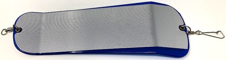 What’s the one colour that stays the same at all depths? Yup, blue. Blue is the popular colour for colours to turn as they go down the water column. White turns blue at 100 meters, red turns blue at 10 meters. So here’s a hint—this flasher is blue. Perfect for muddy water and returning fish focusing on darker colours.