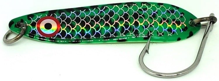 So good they made it rhyme. Carry it everywhere and you’ll pick it every time. In fact, in 2012 when Dane Christensen of The Harbour Chandler was sizing up new season prototypes, his friend Dave Mitenko kept picking and slaying with this one—silver and two-tone green. “It’s a keeper!” Needing a name, they turned to Dave’s newborn son, Kilian Mac Mitenko, and the dust settled after a misspelling. How’s that for a fish story? It’s as true as the fish you’ll be catching when you use this one.
