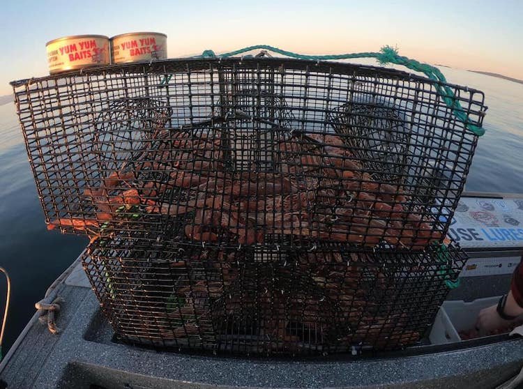 This is the biggest factor. Many like to use the round, stackable prawn traps. I’ve used them, and they’re fine. But after being introduced to the Bauer traps, which are rigid, square, and coated, I’ll never go back. This switch improved my catch the very first outing. I dropped in the exact same spots and they produced. Now don’t get me wrong; the round stackable traps have their places where they work efficiently as well. But for prawning off central Vancouver Island, I’ll go with the square traps every time. An older gentleman once told me that the mesh of the stackable traps moves around too much, imitating an octopus and therefore scaring prawns away. I even tested a round stackable vs. a square trap on the same 500-ft line this summer. The round trap got 37, while the Bauer trap had over 100.