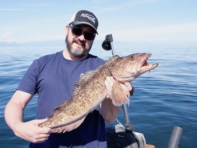 With such glass water conditions, we decided to pursue bottom fish around 2 p.m., since there was minimal current. Over the course of the day we saw a lot of boats fishing, but not much in the way of nets. While jigging Entrance Reef, we fished water depths from 60 to 120 ft with bait on slider outfits and jigs. Even though the drift was ideal, the pinnacles and shelf positions are difficult to maintain without using the outboard. Nevertheless, we picked up our limit of cod and one perfect table ling.