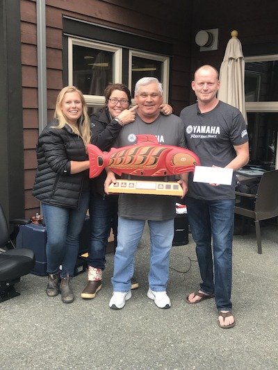 Sam Kagan, Adele Larkin, 2018 Salmon Enhancement Derby winner Barney Edgar, and Nootka Marine Adventures Marketing Manager, James Fisher.
